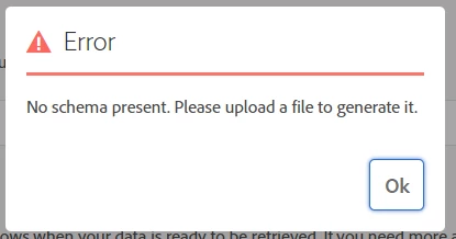 We have uploaded the csv and .fin file in the FTP root directory, but when we validate the schema we get this error :
