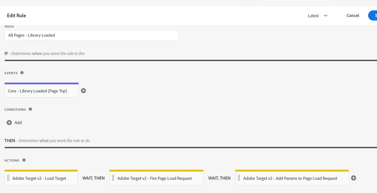 - We also added the rule to load Target then fire Page Load Request as given in the document above (Attaching the rule screenshot)