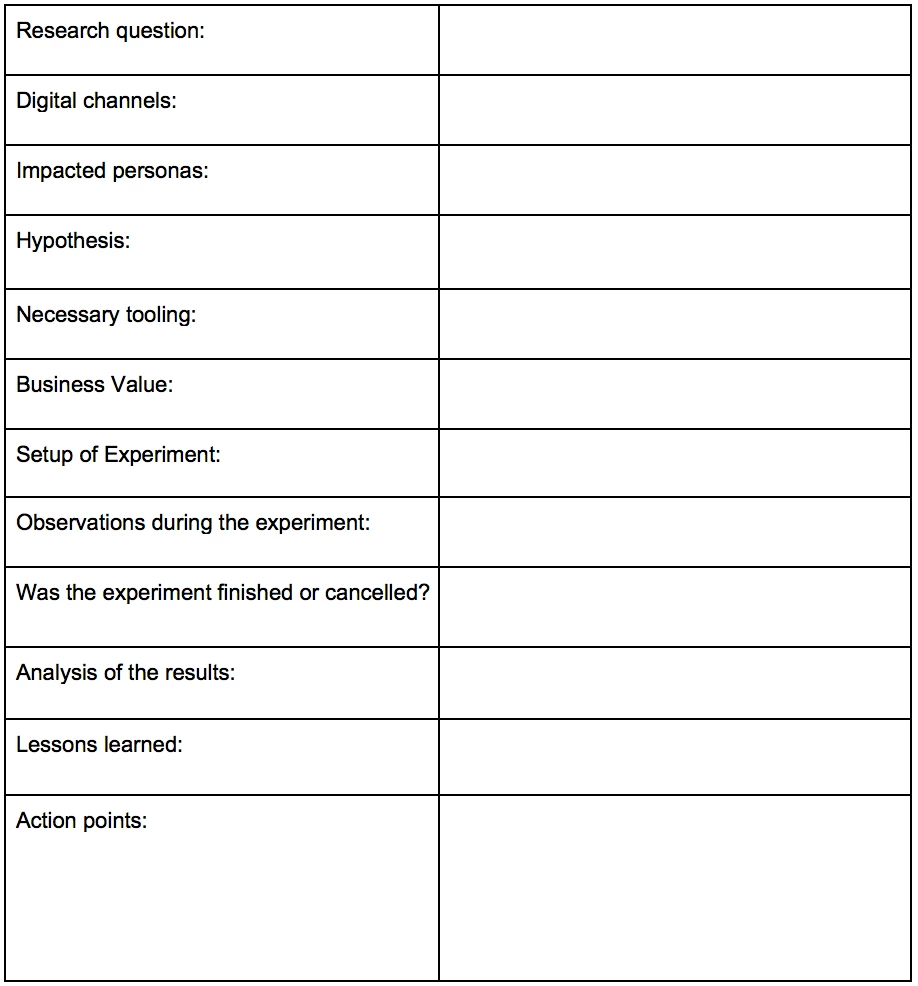 Therefore, with the right tooling (e.g. Adobe Target), process (e.g. SCRUM) and planning tool (e.g. JIRA), marketing teams can start their endeavour in their experimentation world.
