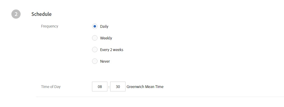 In our Feed load interface we have it set up to run at 08:30 GMT as stated in the interface