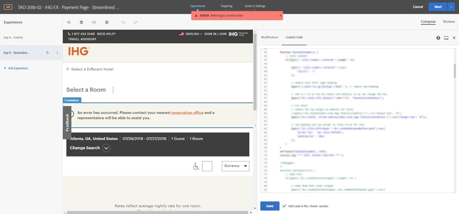 Is anyone having issues with Target Standard/Premium, where upon saving a change, an error message is shown stating: ERROR Referring to invalid nodes?