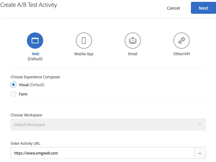 However, the changes in my Exp B that I have done in the Top Navigation drop-down names are only getting reflected on the home page <https://www.amgweb.com> which I entered as an activity URL when started creating the A/B test. I want my changes to be shown on every page. How can I fix that? Also, can we create 3 or more experiences in the A/B test and select an auto-allocate targeting methodology?
