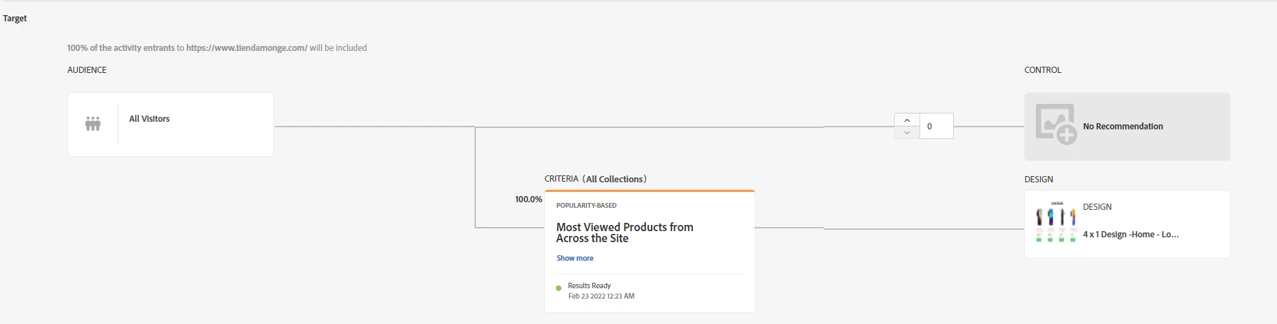 I'm having an issue with a target experience, we have a product recommendation in the site home page using the "Most viewed products across the site" criteria and applied to all visitors as you'll see in the ss: