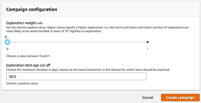 How would you like the feature to work - In the Criteria screen, a slider similar to Attribute Weighting between 0% and 100% or 0 and 1 like AWS Personalize's: