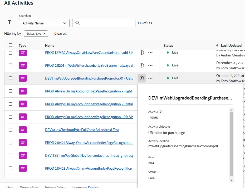 @cristinel thank you. Just to add a little more context, we append all of our activity names with either "DEV", "QA" or "PROD" and it's no longer possible to see at a glance which is which. Confirming @tszat's comment above as well - even when you click the quick info icon you see a truncated activity name - the only way to see the full name is to click into the activity.