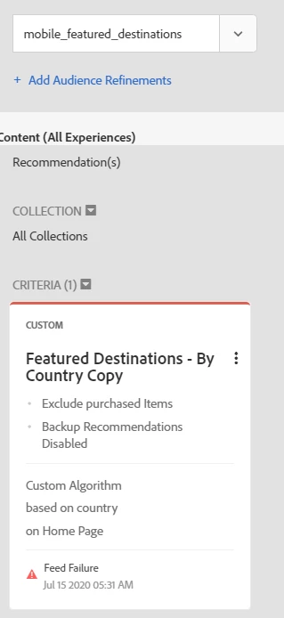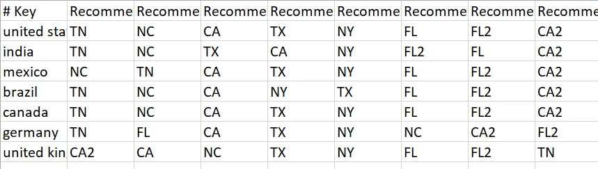 }Now the results that I am getting are same irrespective of whatever value I pass, as I am expecting that on passing "india", the recommendation order will change as mentioned in the feed, but it's not happening. Is there anything I am missing, or understanding and implementing it incorrectly.