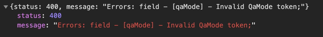 Getting the following error in my browser console - Errors: field - [qaMode] - Invalid QaMode token;