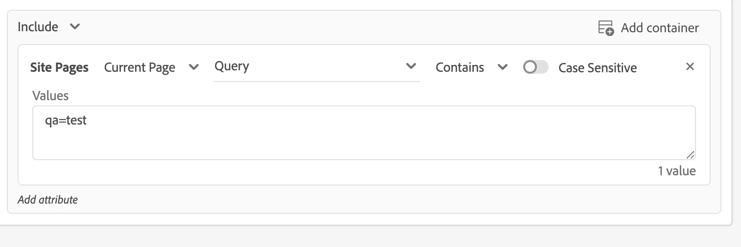 The rule is: Current Page URL contains ?test