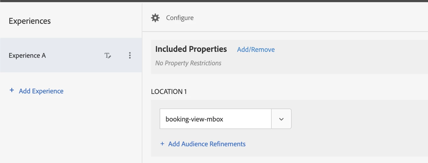 The second step is to choose which “location” (i.e. mbox) you want to serve your activity from — I’m using the “booking-view-mbox” which is created when my Booking View screen begins to load.