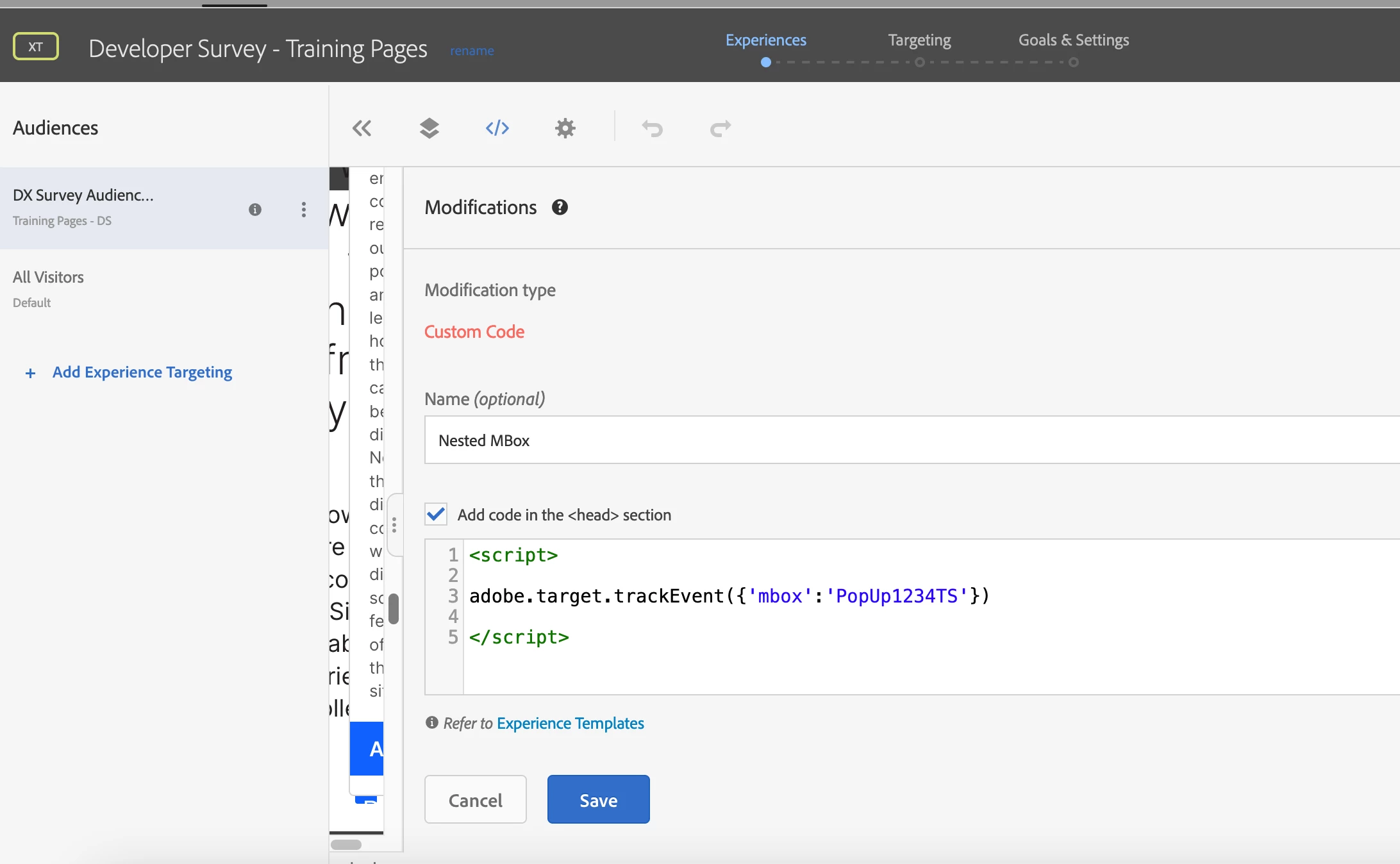 1) Set up the Nested Mbox parameter in the experience via XT under Modification as custom code