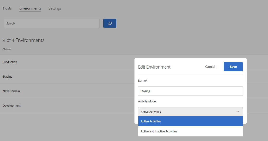 To access the Hosts list, click Setup > Hosts.