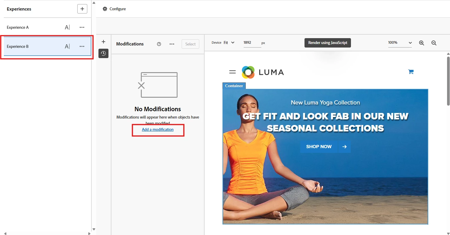 - Experience B, where I did not add any code, is unexpectedly delivering the Mbox code. The Mbox code is appended on Experience B, and when I open the VEC it shows up there.