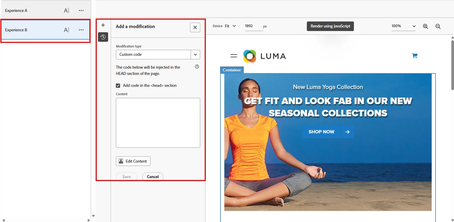 Issue with A/B Test – Custom Code not delivering on Experience A