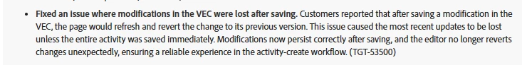 - Experience A delivers nothing (and appears empty in the VEC editor).