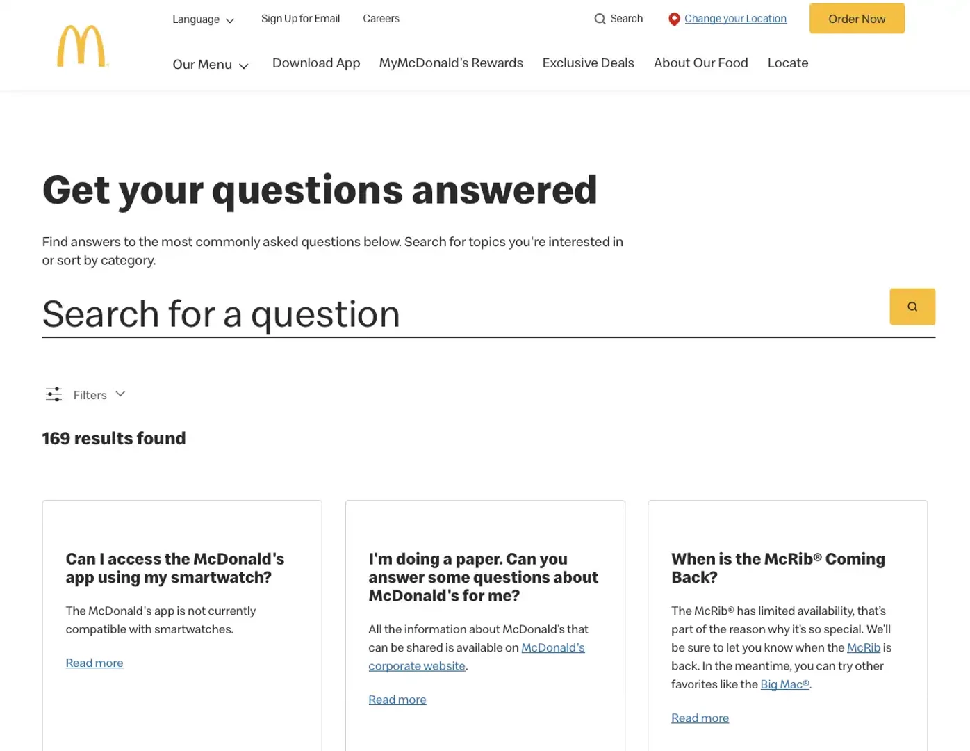 In addition to recommendations related to sales, brands also use this feature to help their customers get relevant help/support quickly. For example, many brands like McDonalds show the top asked questions under their FAQ section to reduce time in searching for answers.