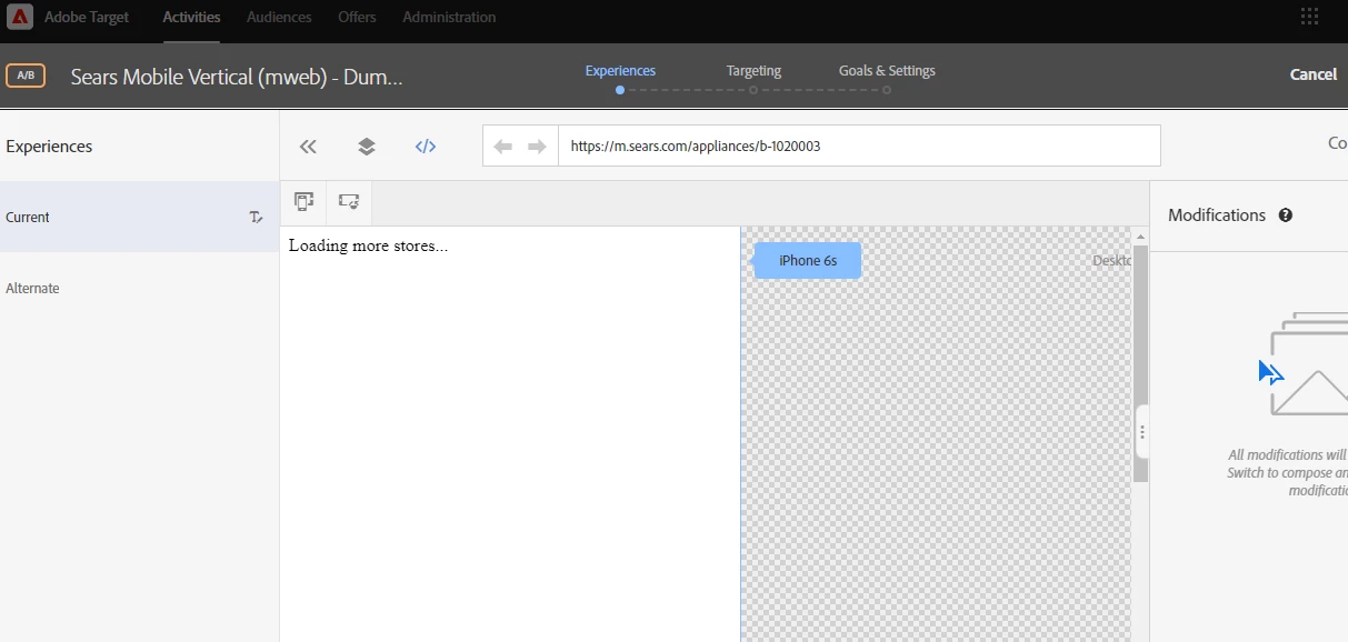I am trying to setup test on mobile web page but the page is not rendering on VEC even after changing the view port instead just showing "Loading more stores" with a blank page (attached SS). Please suggest resolutions.