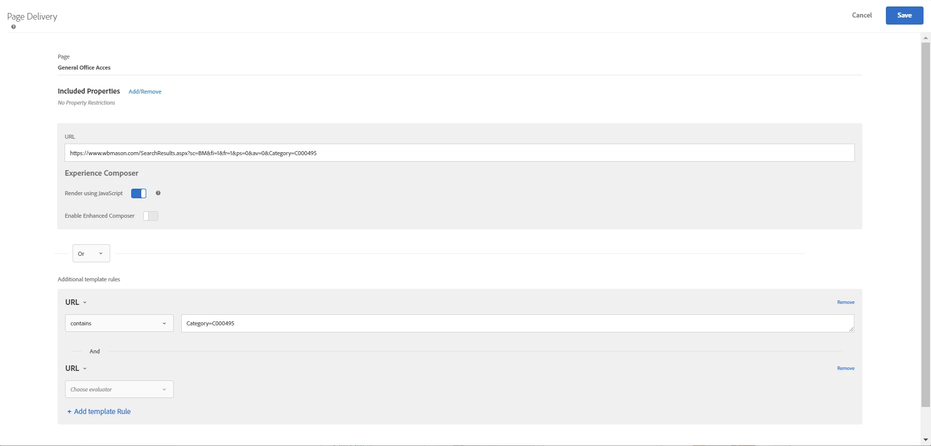 For many of my Adobe Target Experiences I need to target multiple URLs. Ideally I should be creating one experience and Page Delivery should allow me to add multiple "or" statements to delivery to those multiple URLs.