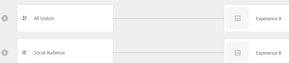 How would you setup an A/B which separates an experience based off of 2 audiences? I have a combined audience rule at the front door of the test and then once inside it I would like to display the Control to audience no.1 and the Experience B to audience no.2. I have added Experience Audiences to the A/B configuration and while validating this it seems like I have 4 experiences in total.