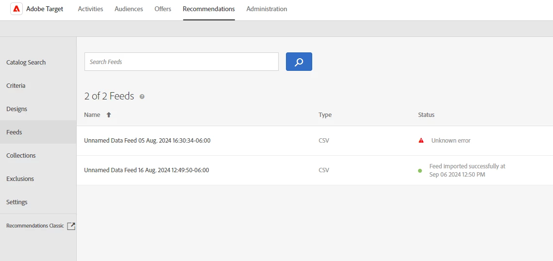 Problems uploading recommendations feed to Adobe Target