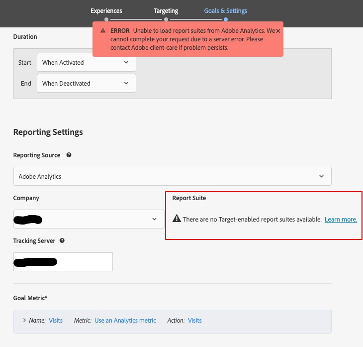 Is anyone having an issue in Target with report suites? I'm unable to select any suite, which is preventing me from saving ANY changes!!!