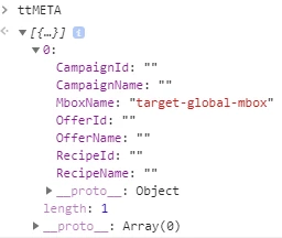 I added the ttMETA code to the page and see this in the console: