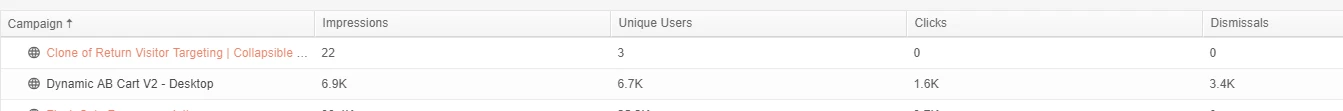 see an example below, where we have 11 campaigns live but i can review them all under one tab / report or dashboard.