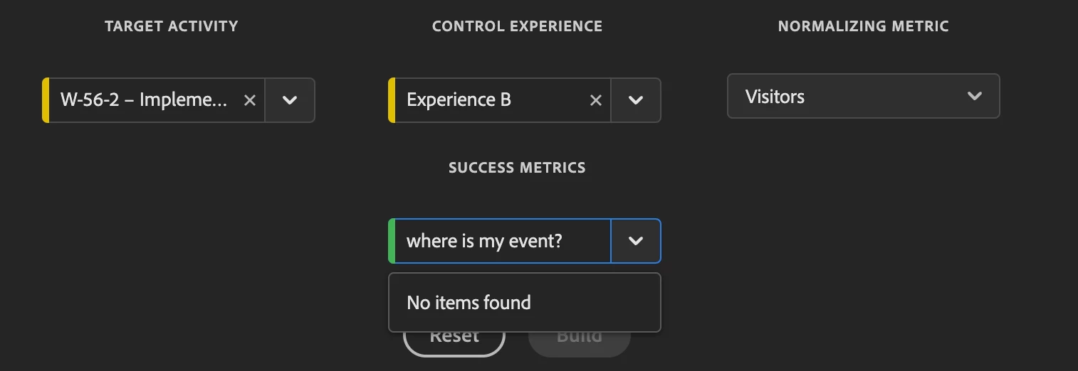 1. Here comes my first question, why to be able to measure this event I have to put it as -> Metric: Conversion and Action: Viewed an mbox? For me it makes more sense that a click on a button is an Engagement metric and not a Conversion, but I see that from Engagement I can't select this event ‘test-clicked-cta’.