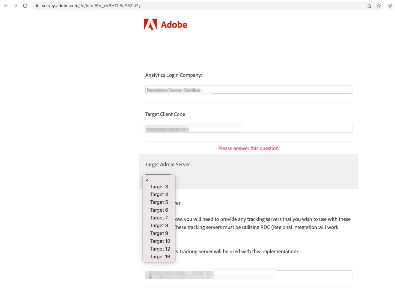 Anyone knows what is the Target Admin Server detail in the new A4T provisioning request form by Adobe? It's a required field and the form cannot be submitted without it.