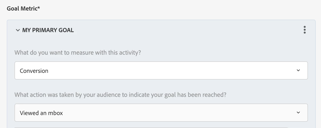 My A/B Test has one location which I use to get an experience, and an action in the app marks a successful conversion (see attached image)