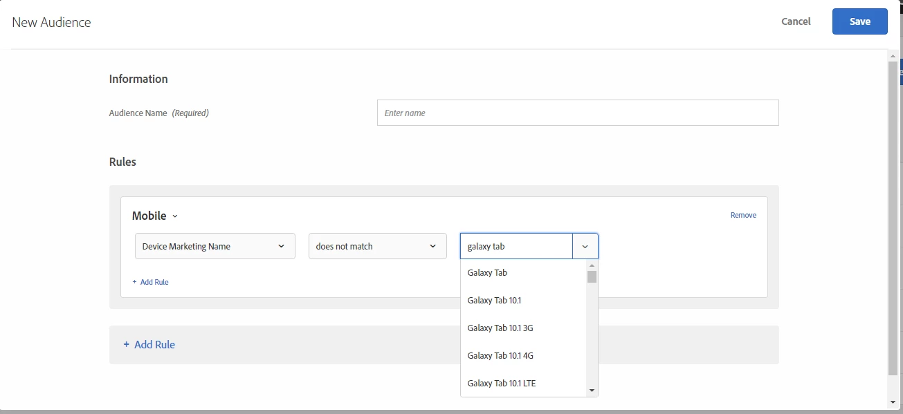 I am trying to create audience in target where I want to exclude Tablet/iPad devices from my test.