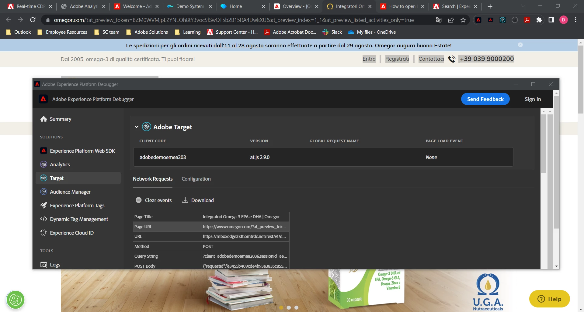 I used VEC Helper to ingest the target library, everything seems correct, but I don't see the experience on the client web site, this is the preview url: https://www.omegor.com/?at_preview_token=BZM0WVMjpE2YNEQh8tY3vocSfSwQT5b2B15RA4DwkXU&at_preview_index=1_1&at_preview_listed_activities_only=true