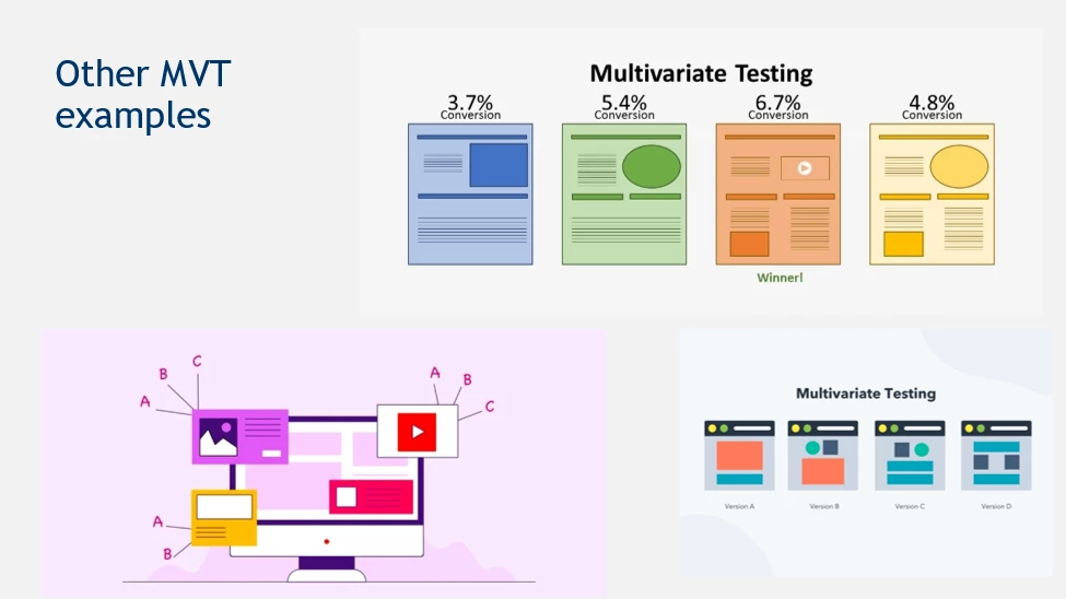 https://vwo.com/blog/difference-ab-testing-multivariate-testing/ - Multivariate Test: https://marketing.adobe.com/resources/help/en_US/target/mvt/c_multivariate_testing.html