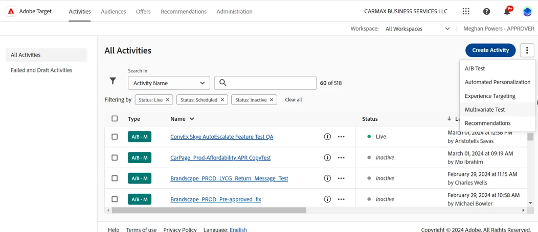 This post will cover Multivariate (MVT) Testing! MVT Testing falls into the non-personalized, non-AI/Machine-learning suite of capabilities in the Adobe Target Premium capabilities package, although this option is also available in Target Standard. In future posts, I’ll cover the other categories! Stay tuned!