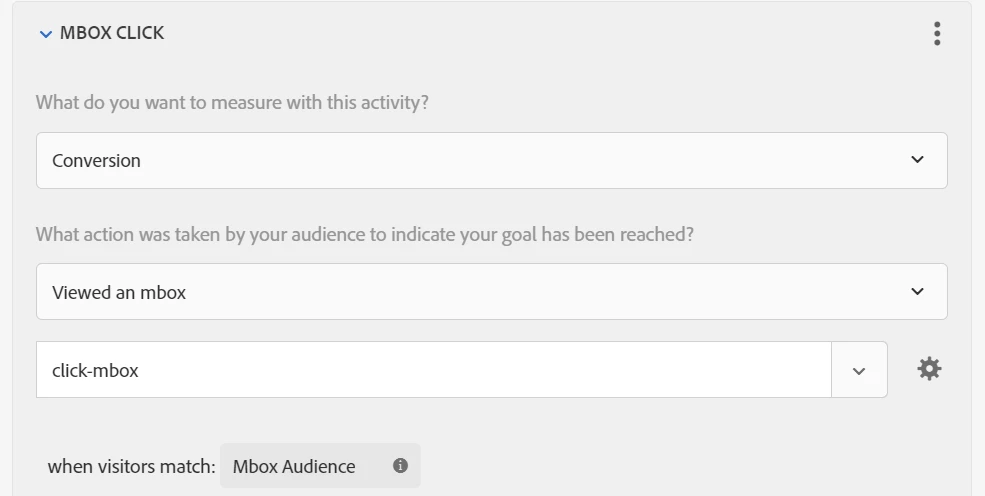 I have setup a custom code in one of the activities to fire a custom mbox and I am trying to track that in the conversion settings as viewed an mbox and selecting the parameters passed in audience refinement and checking the value. But it does not increase any conversions for the clicks happening , but If i try by clicked an element and set that as a metric the conversion does happen.