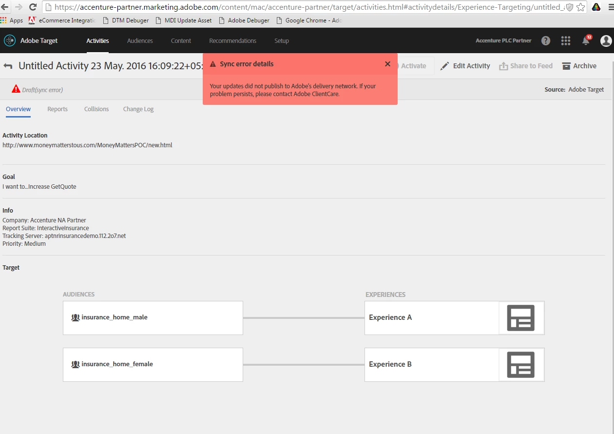 We are trying to use the A4T feature of Adobe Target Standard. However when we create a activity selecting a report suite from the Analytics we get a Sync error ( Please see the attached screenshot).
