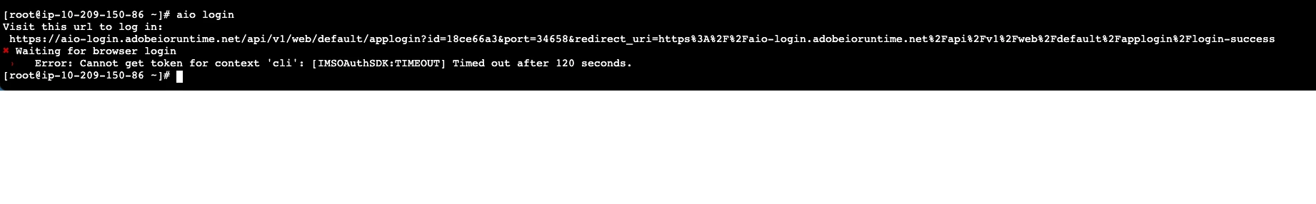 I have installed AIO cli successfully through terminal, however when I'm trying to do aio login - it asks for browser authentication which I'm unable to access in the EC2 machine.