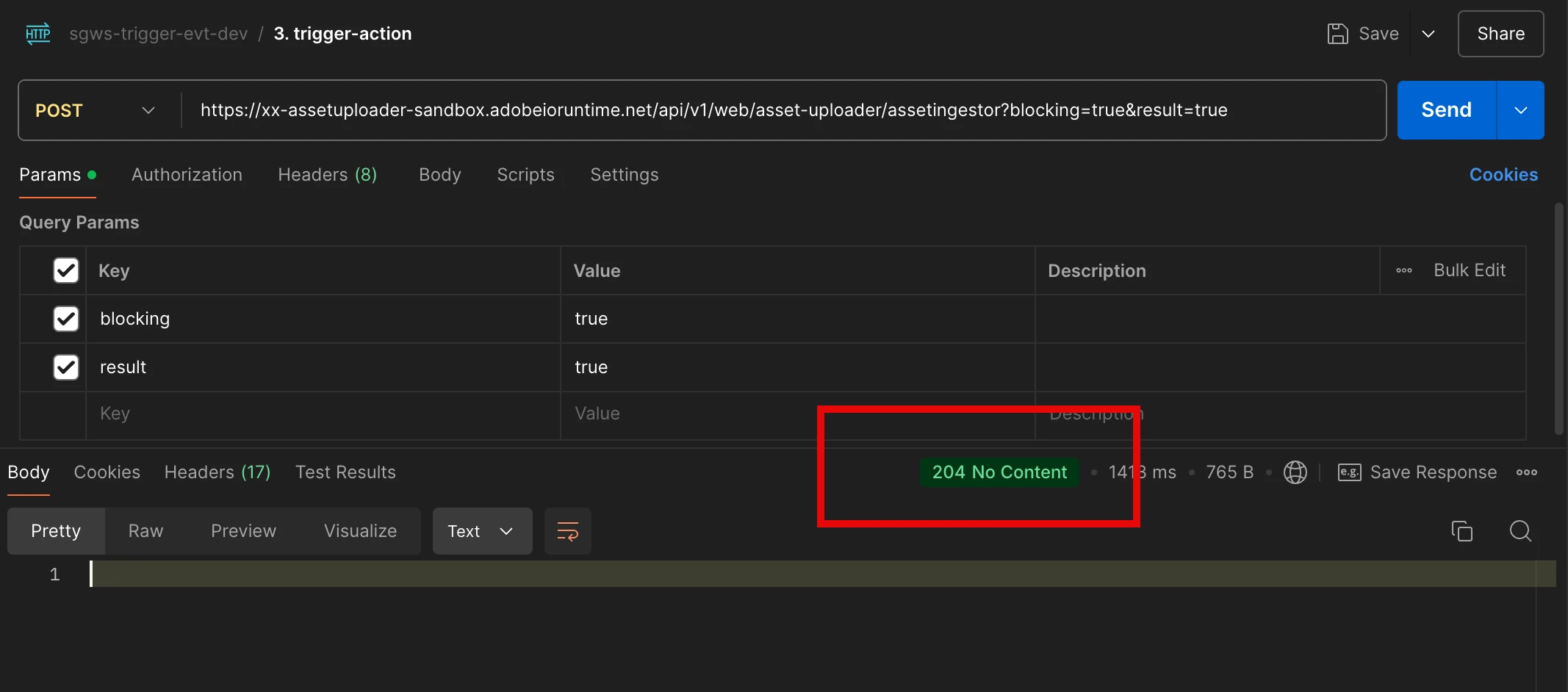 Calling webaction from Postman returns 204 instead of printing response message