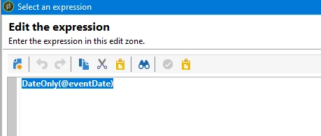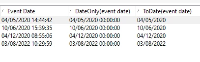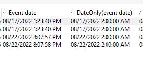 When I go to see what it returns in the data view I have the real EventDate data and the data with the function applied and it continues to return time when I only expect the date