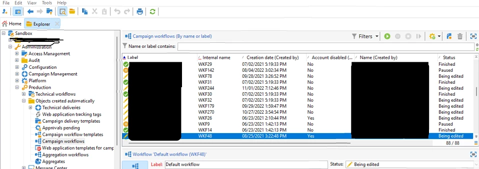 There is a way for the user to see all the objects (campaigns, deliveries, wf, etc.) they own or created?