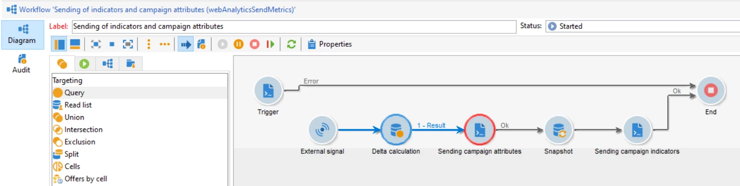 "Sending of indicators and campaign attributes" OOB Technical Workflow is getting errored out, attached the Screenshot for reference.