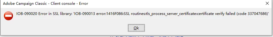 Adobe Campaign Classic - Client Console Eror / IOB - 090020 Error in SSL Library