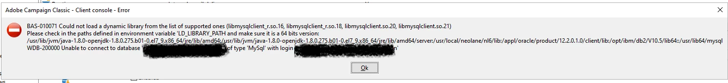 Adobe Campaign Classic On Premise Hybrid (V7 9187) - New MYSQL External Account Connection Error