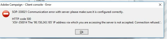 Adobe Campaign Client Communication Error With Server