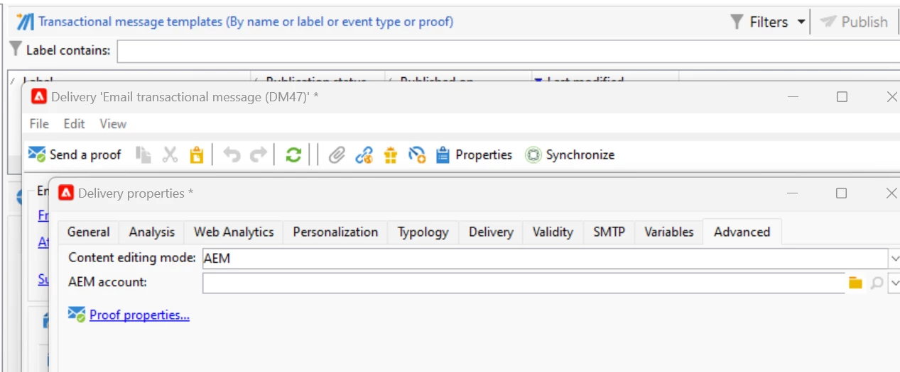 AEM Email template in message center