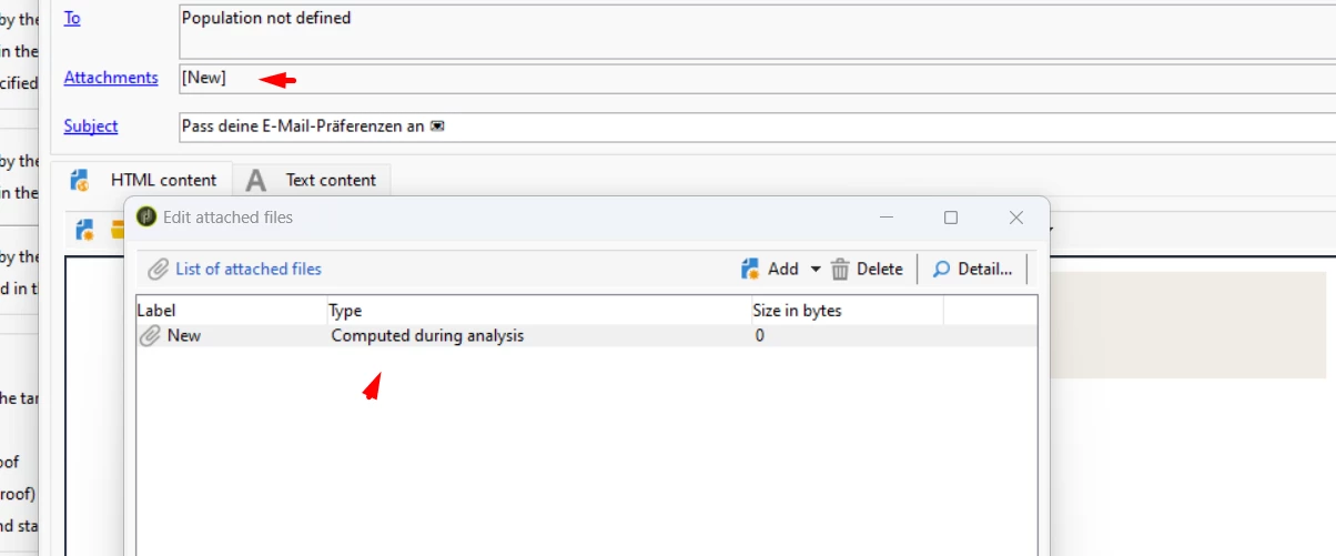 Attach a csv file on a delivery or alert activity that is calculated on the workfow.