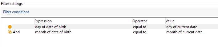 Day(@birthDate) equal to Day(GetDate())