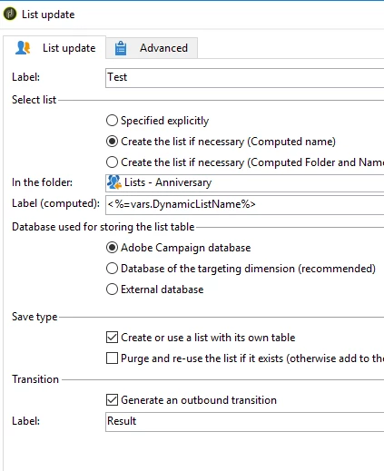 list update node :
