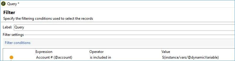In my workflow the above (dynamic) values are stored in an instance variable in JavaScript before the Query.