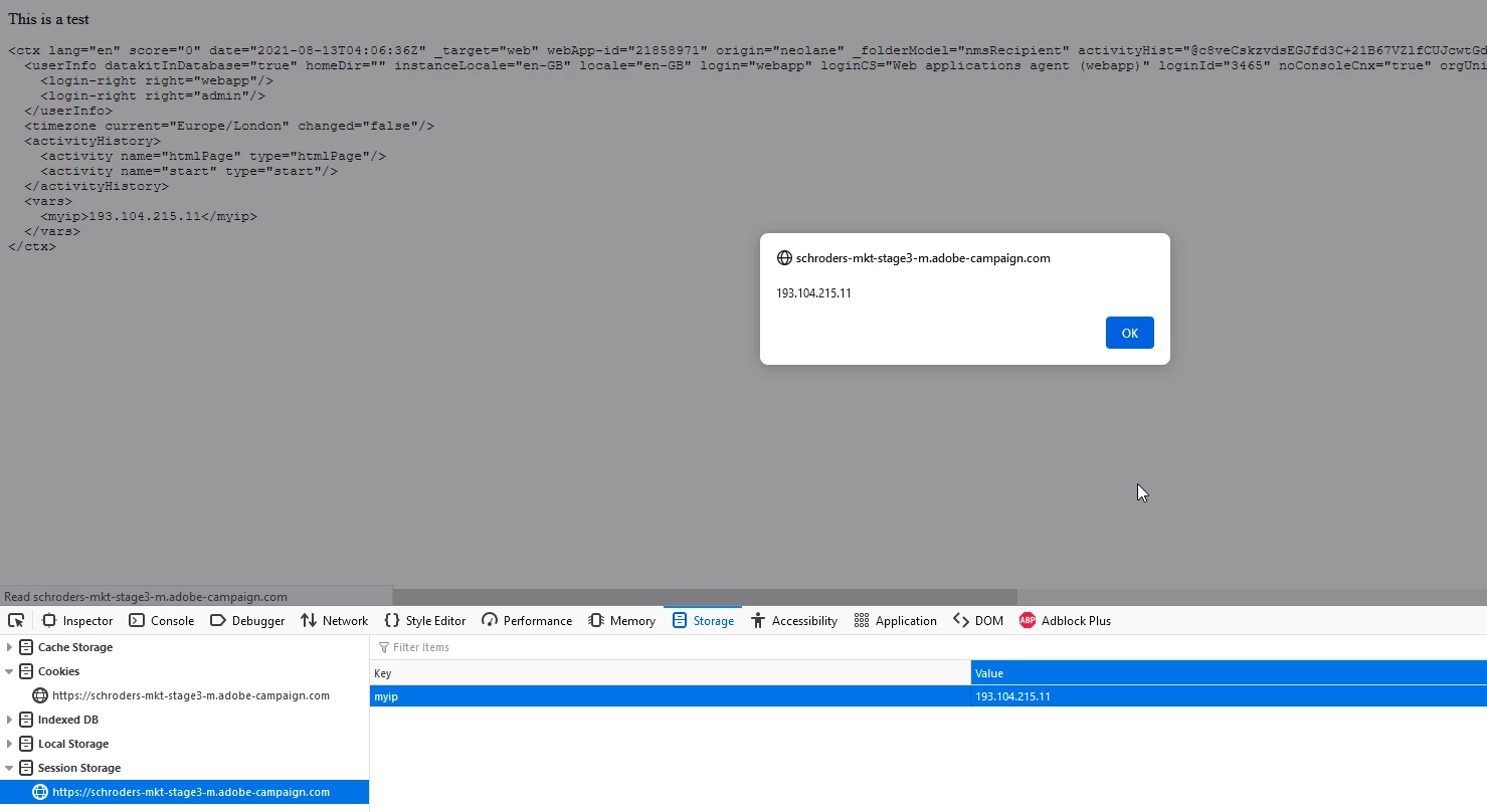 Below you can see we have stored the ip in ctx.vars.myip as well as sessionStorage so that you can do whatever validation you may require.