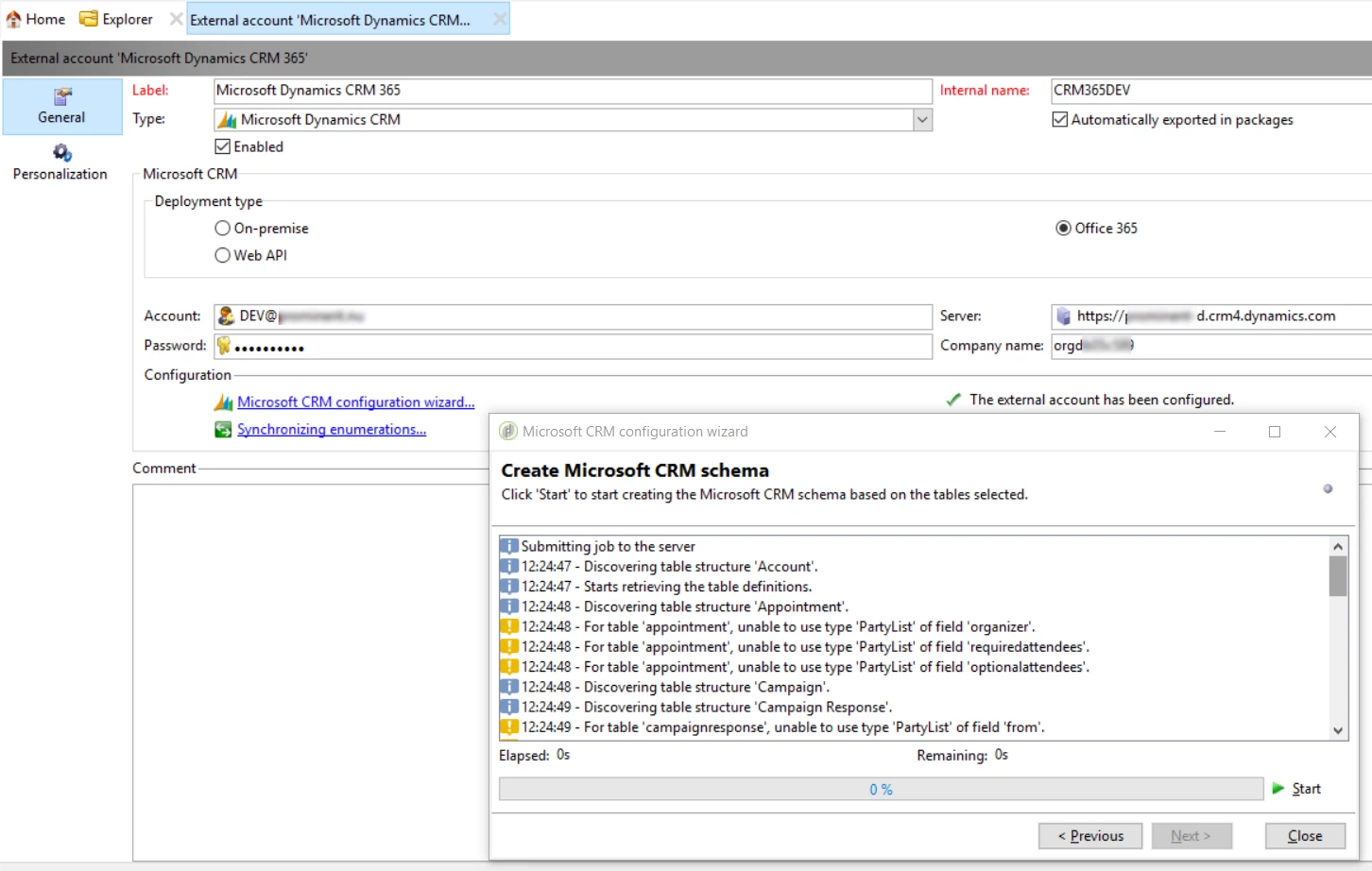 External account is configured and I am able to synchronize entities from CRM to Adobe campaign.